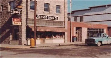 The Jackson Drug first opened its doors in 1919 in the old Clubhouse building on the east side of the square, by our great-grandfather, Bruce Porter. In 1937 the soda fountain was moved to its more famous location in the stone building on the northwest corner of the Town Square.